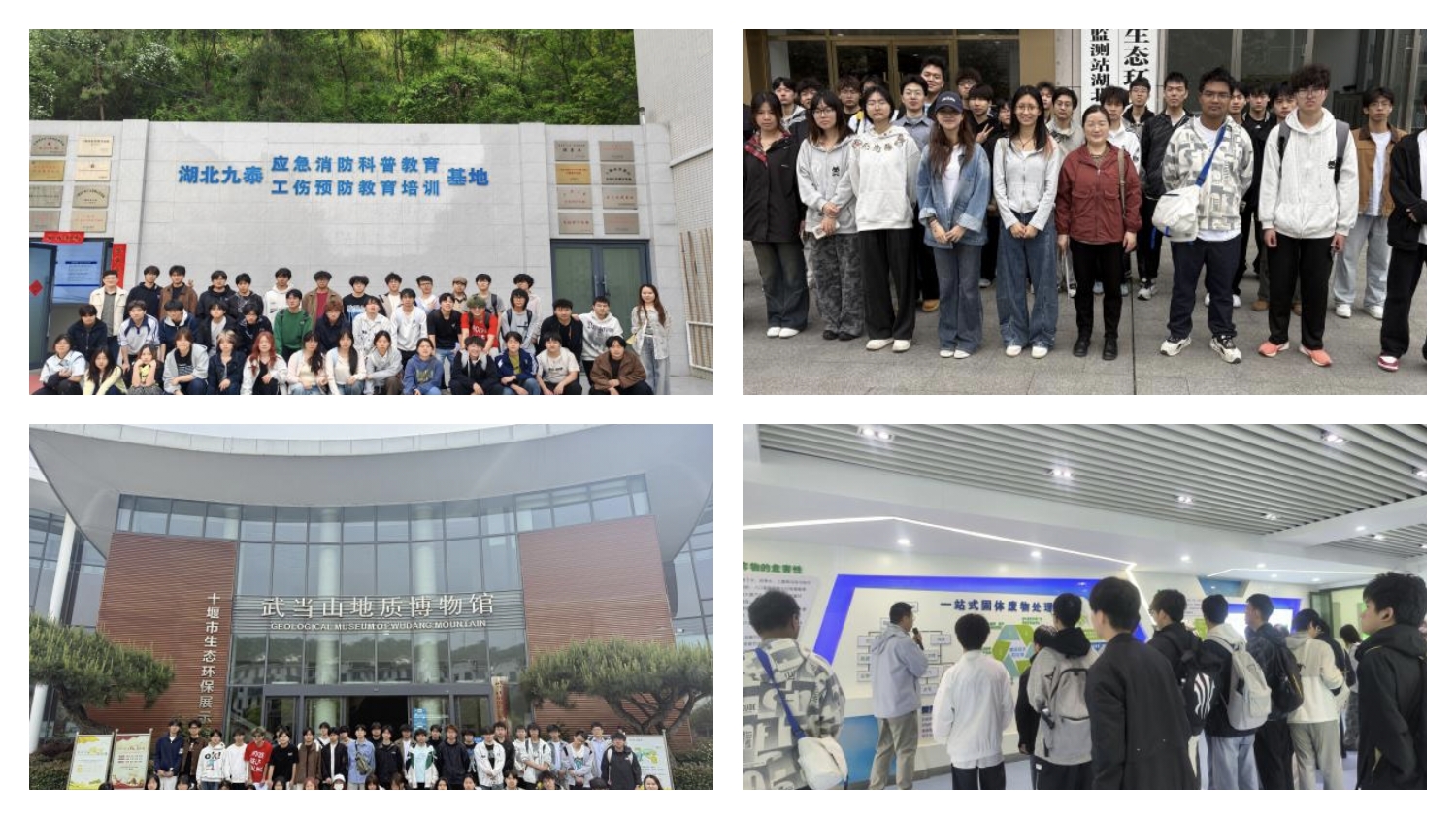同学们先后走进湖北九泰安全技术有限公司、东风环保餐厨垃圾处置中心、十堰市生态环境监测中心、车站沟污水处理厂、武当山地质博物馆等企事业单位,近距离观摩污水净化、固废处置、环境监测全流程工艺,认真聆听工作人员讲解污染治理技术、环保运维规范、区域生态管控现状,详细学习水环境治理、固废资源化利用、生态环境质量管控等专业知识。