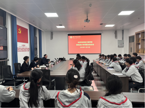 11月12日晚7:00,化环学院在明理楼B506会议室组织全院学生干部召开消防安全主题教育暨用火用电集中整治推进会。学院党委书记、副书记、学工办主任、辅导员及全体学生干部参加会议。会上,学院党委副书记曾晓东传达了学校消防安全工作会议精神,强调学生干部作为校园安全管理的“排头兵”,要充分发挥模范带头作用,带头遵守消防安全规定,主动参与消防安全宣传与隐患排查工作。随后,学工办主任解读了《化环学院宿舍用火用电专项整治工作方案》,明确了整治目标、排查重点、实施步骤及责任分工,要求学生干部牵头组建班级安全督查小组,定期对宿舍用火用电情况进行自查自纠,及时发现并上报安全隐患。与会学生干部纷纷表态,将以高度的责任感和使命感,积极投身消防安全工作,带动身边同学共同营造安全、和谐的校园环境。