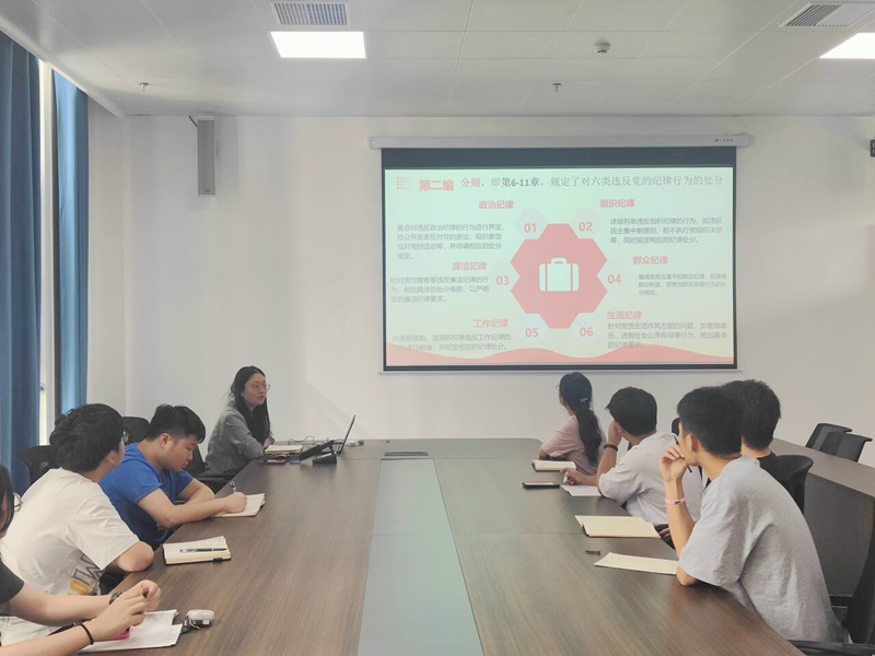 为进一步增强广大师生党员的纪律意识,提高党性修养。6月24日下午,员工党支部书记张锦佳在明理楼B506讲授党纪学习教育专题党课,员工党支部全体党员出席本次会议。