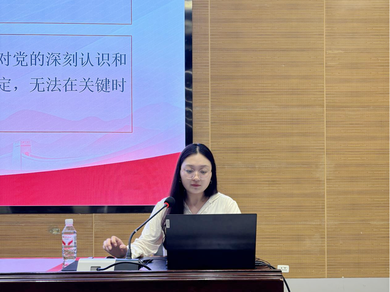 随后在“明确入党条件,遵循基本程序”环节,张锦佳解读了入党申请资格、流程环节与规范要求。从年满18周岁、承认党的纲领等基本条件,到递交入党申请书、团组织推优、积极分子培养、发展对象确定、预备党员接收及转正等五个阶段25个环节,作了清晰说明。她还提醒员工撰写入党申请书需使用学校信纸和黑色签字笔,内容须真实深刻;积极分子考察期和预备期各为1年,需严格遵守时间节点与考核标准。
