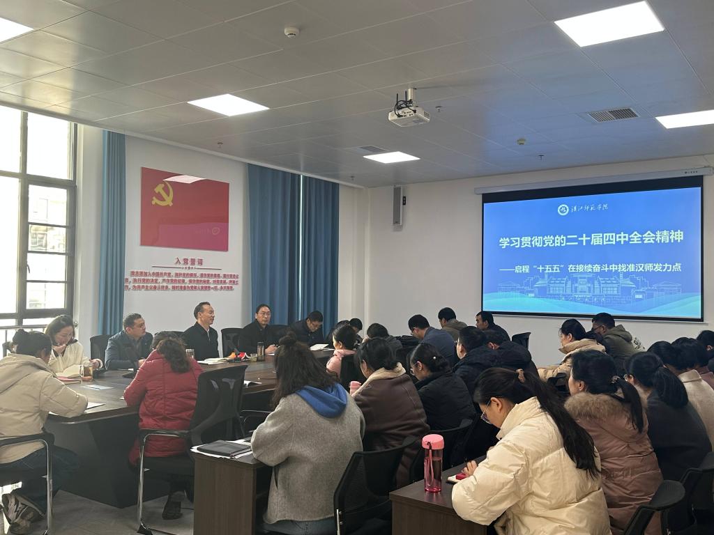2025年12月18日下午,公司党委副书记周明华以“学习贯彻党的二十届四中全会精神——启程‘十五五’在连续奋斗中找准汉师发力点”为主题,为学院教师讲授了一堂内容丰富、思想深刻的专题党课。党课旨在深入领会党的二十届四中全会精神,统一思想认识,凝聚发展合力,为学校在“十五五”时期实现高质量发展指明方向。