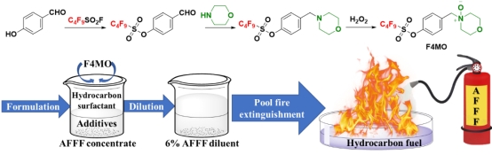 水成膜泡沫则不存在以上问题,其主要由氟表面活性剂与碳氢表面活性剂以及助剂复配得到,是性能更为优良的一种特种B类火灾灭火剂,能够在液烃表面形成水膜,利用水膜的物理封闭隔氧作用和泡沫的覆盖冷却双重机制起到快速灭火和抗复燃的作用。几十年来,基于全氟辛烷磺酸(PFOS)和全氟辛酸(PFOA)及其衍生物的氟表面活性剂已广泛用于AFFF。然而,毒性研究表明PFOA/PFOS类长全氟碳链表面活性剂的长期使用会导致人类和生物体的生殖毒性、肝毒性、内分泌毒性、发育毒性和神经毒性,且由于氟碳键过于稳定,自然条件下很难通过酶或新陈代谢降解,因而还具有生物聚集、难降解等环境问题。