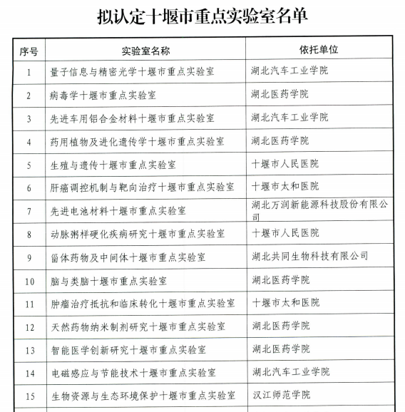 近日,按照《十堰市重点实验室管理办法》有关要求,市科技局经组织专家评审和集体研究决定,认定一批领域方向符合我市创新战略需求、基础条件较为成熟的市重点实验室,我院BB贝博艾弗森官网生物资源与生态环境保护实验室被认定为十堰市重点实验室。