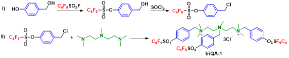 图1. pH响应可回收含氟三聚季铵盐表面活性剂的合成路线