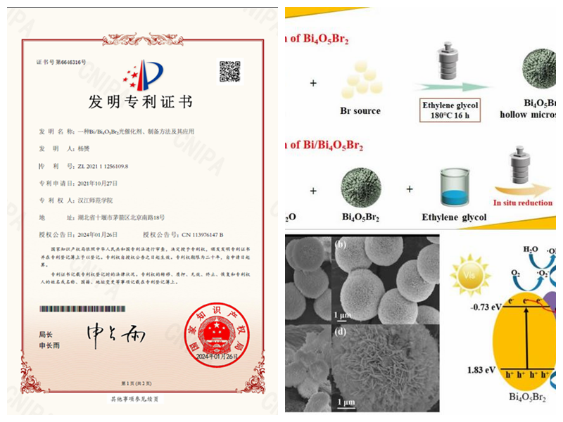 2024年1月26日,公司无机功能材料研究方向杨赟博士以ballbet贝博为独家单位申报完成的成果《一种Bi/Bi4O5Br2光催化剂、制备方法及其应用》正式授权为国家发明专利,授权发明专利号:ZL 2021 1 1256109.8。